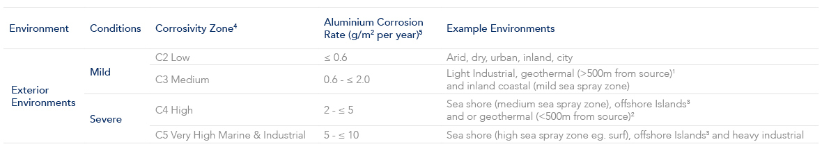 Please refer to ‘Exterior environments close to liquids other than coastal, river and lake salt water environments’ for warranty implications where powder coatings may be in close proximity to liquids.