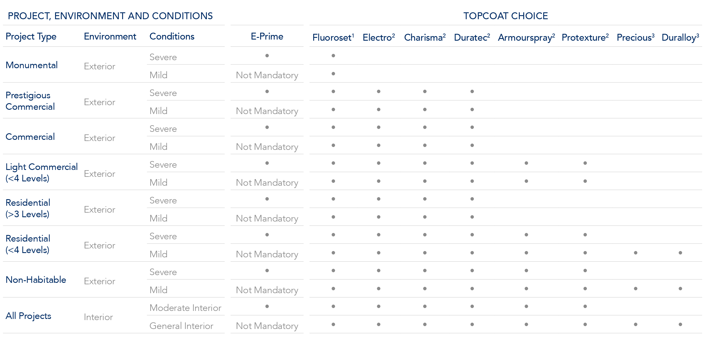 2. Electro, Charisma, Duratec, Armourspray and Protexture, are only suitable for environments >10m from the high tide line.