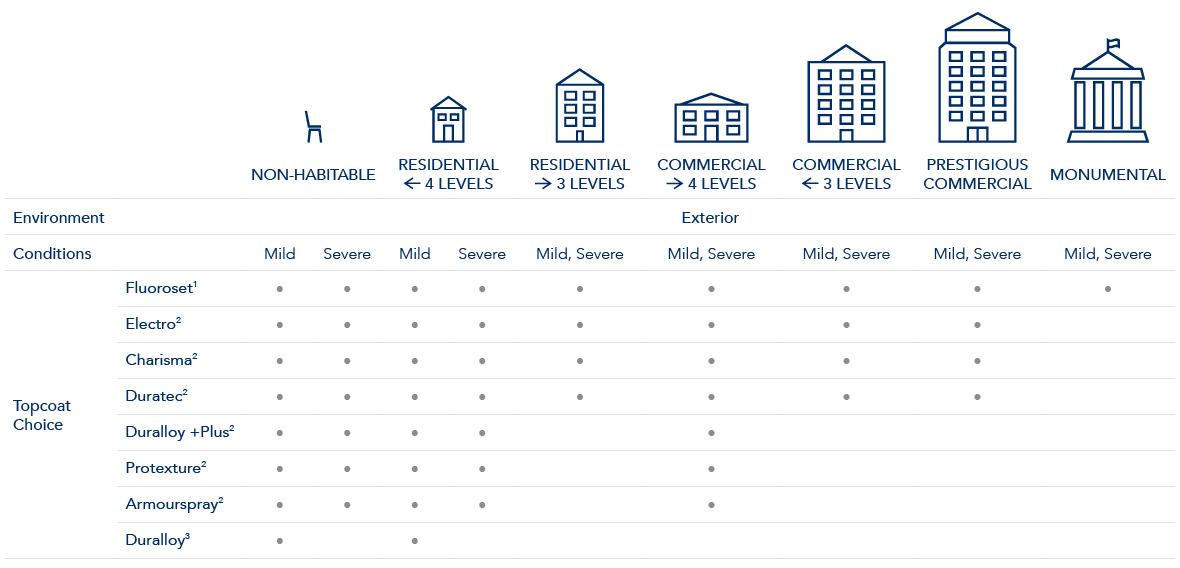 • Light commercial projects < 4 levels are sheltered from neighbouring buildings, but require greater durability due to higher usage and wear.