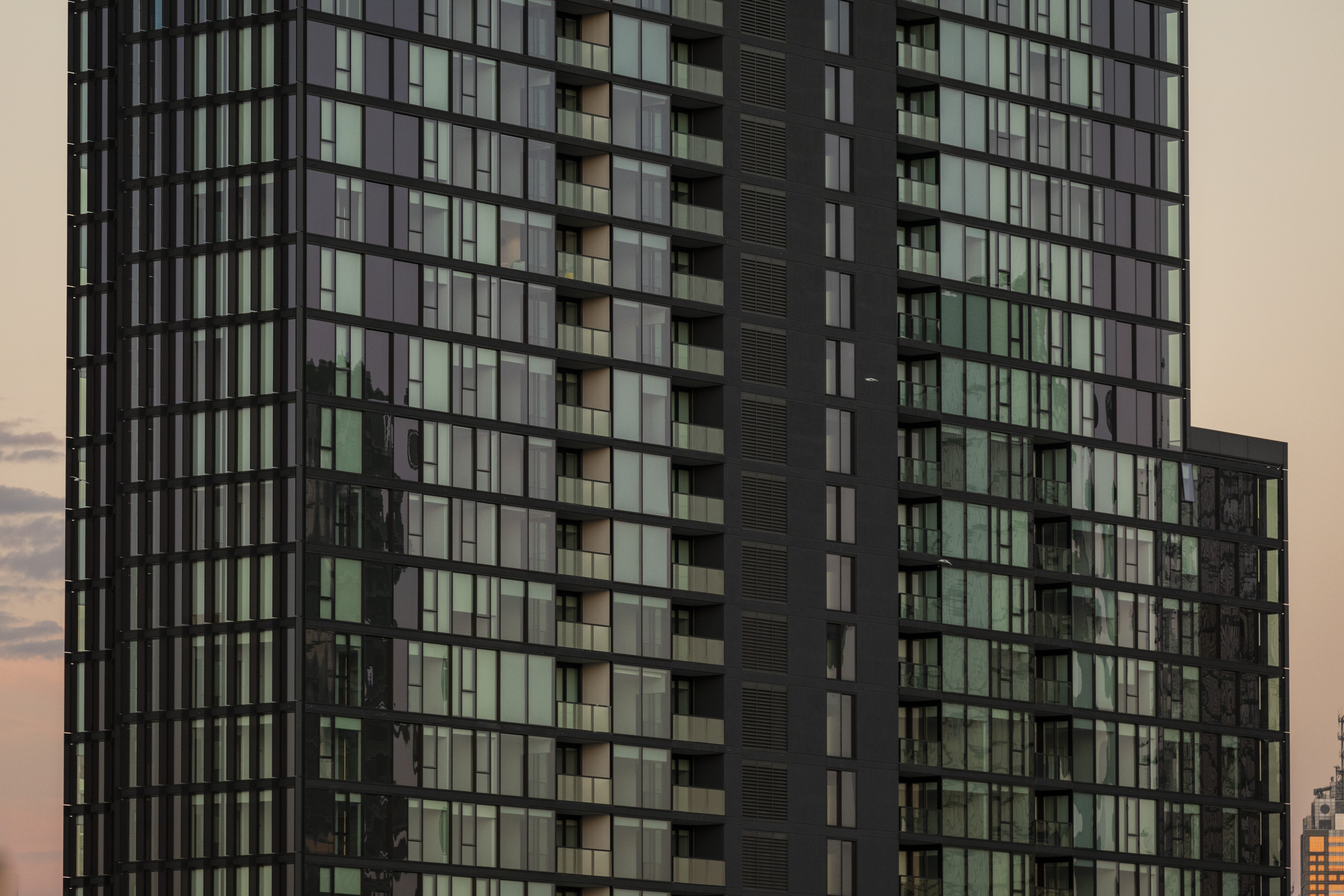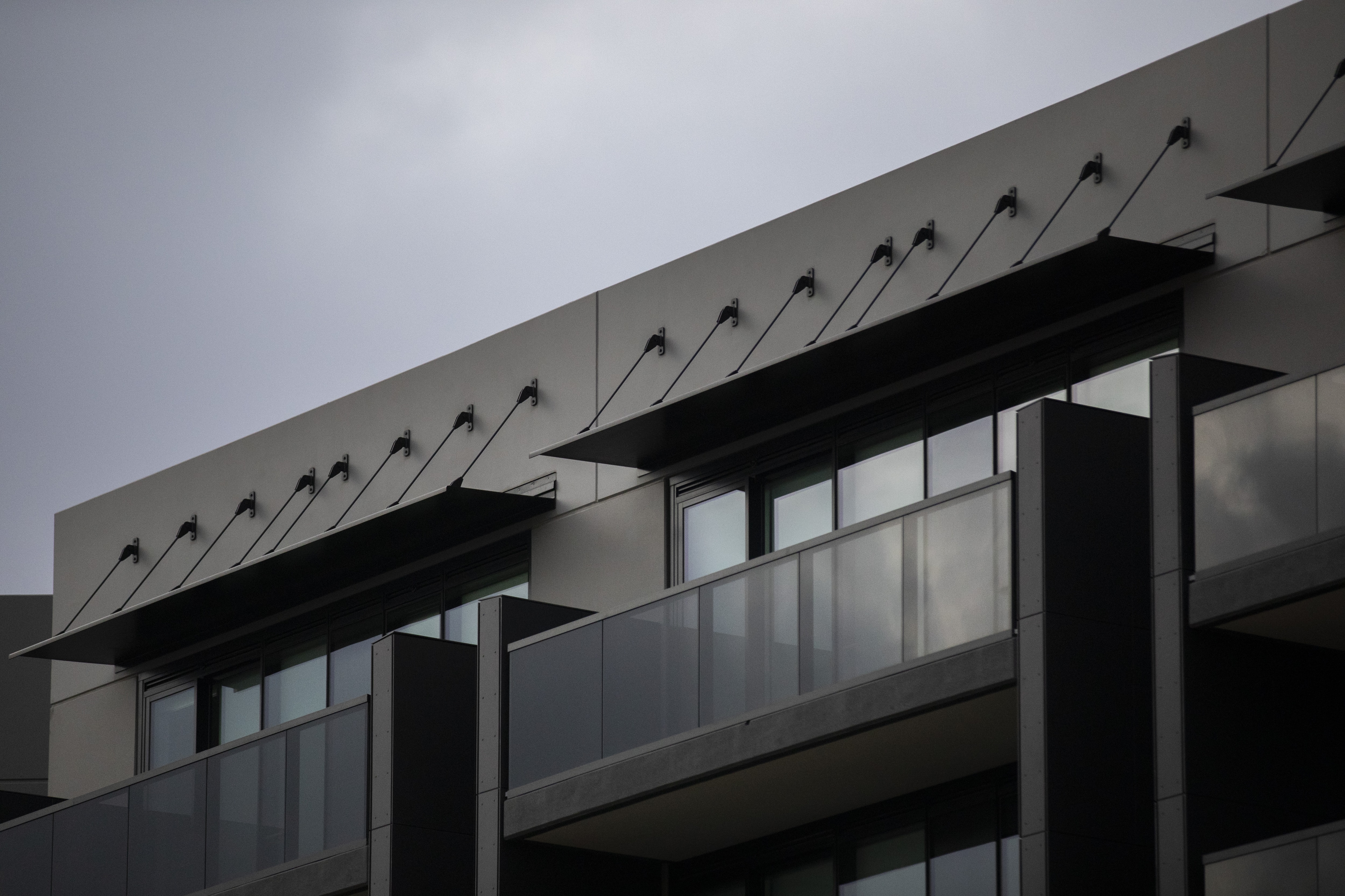 A Melbourne residential complex features super durable Duratec Elements® in a custom colour called Natural Steel Grey Pearl. 1 Collins Wharf has used the distinctive, robust mar-resistant textured finish on the buildings fins, and Duratec Zeus® Black Matt on the curtain walls. These were fabricated and powder coated by G. James Glass & Aluminium to add to the impressive exterior.