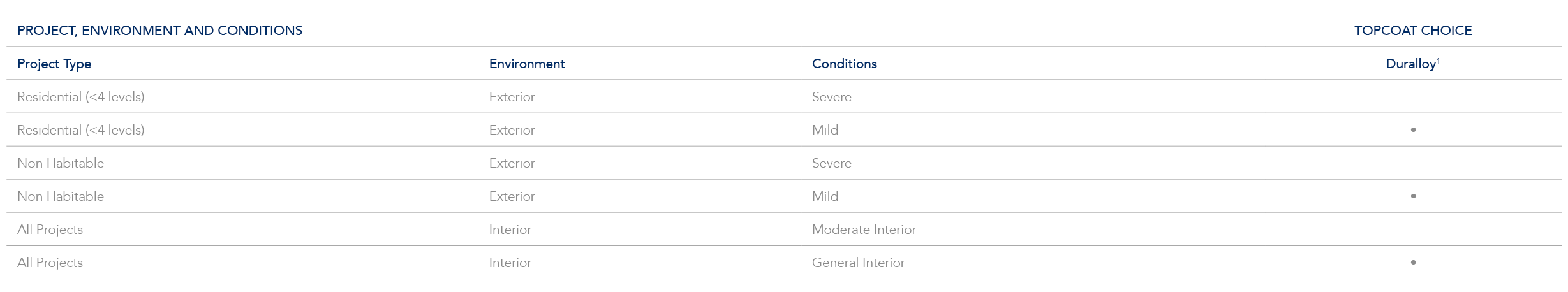 All Dulux powder products are NOT suitable in strongly acidic or caustic environments so the PH must be between 5 and 9.Use the following table which references AS 2312.1, SNZ TS 3404 and ISO 9223 to identify the environment, conditions and atmospheric corrosivity categories. To pinpoint your projects corrosivity zone this table should be used together with the Dulux Macroclimate Corrosivity Zone Maps of New Zealand Guide, available here, or Dulux SpecMap tool available here.