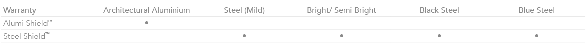 For a comprehensive overview and details of the projects and environments covered by our Steel Shield™ or Alumi Shield™ warranties click on the warranty program below to find out more.